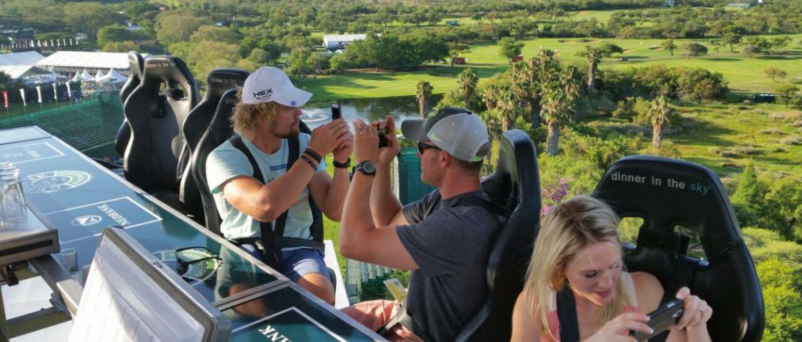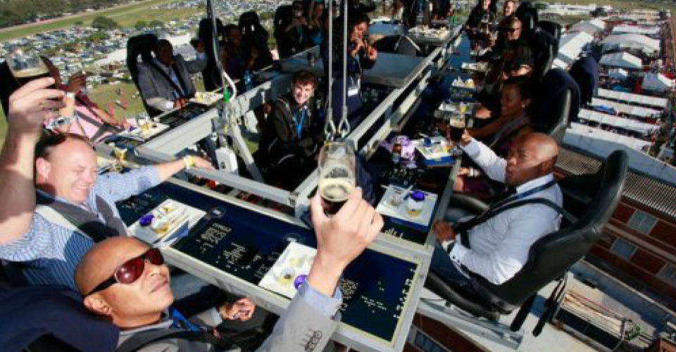 It is possible to relocate the crane and table for mobile use at an event; however, all relocation and setup costs will be incurred by the client. Events and associated costs will be negotiated on a case-by-case basis. We are able to host events in a variety of locations, including busy entertainment destinations, along the magnificent South African coastline, on game farms overlooking waterholes, on golf courses or sports arenas, and even at race tracks or beside waterfalls.